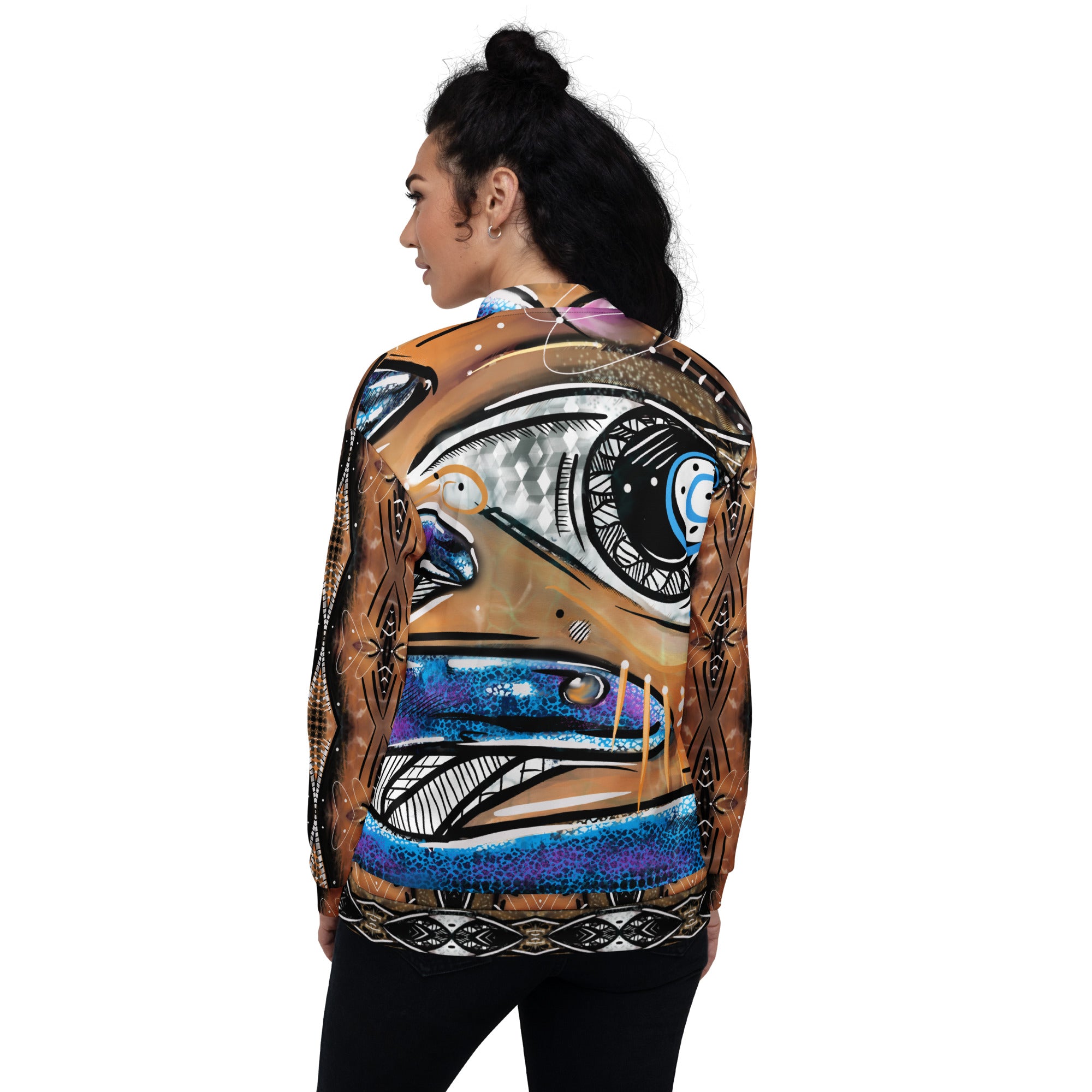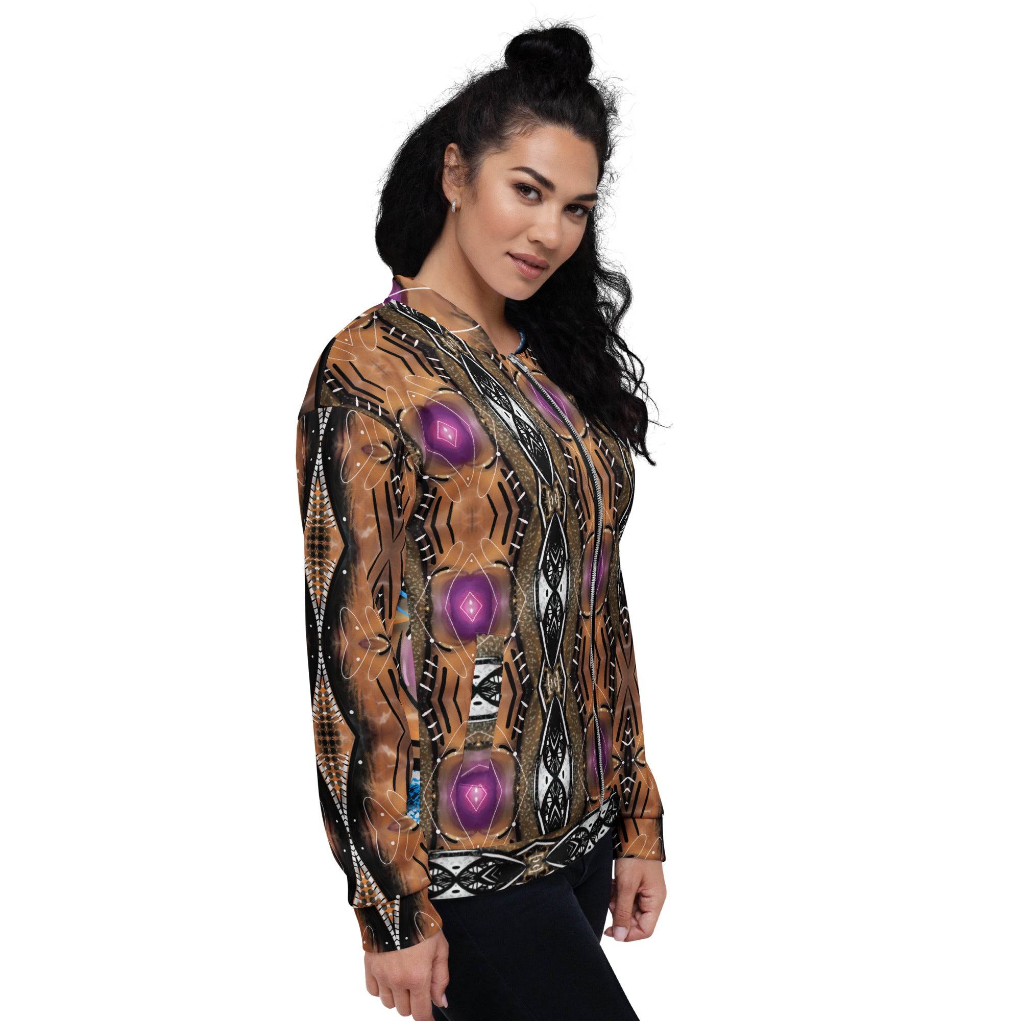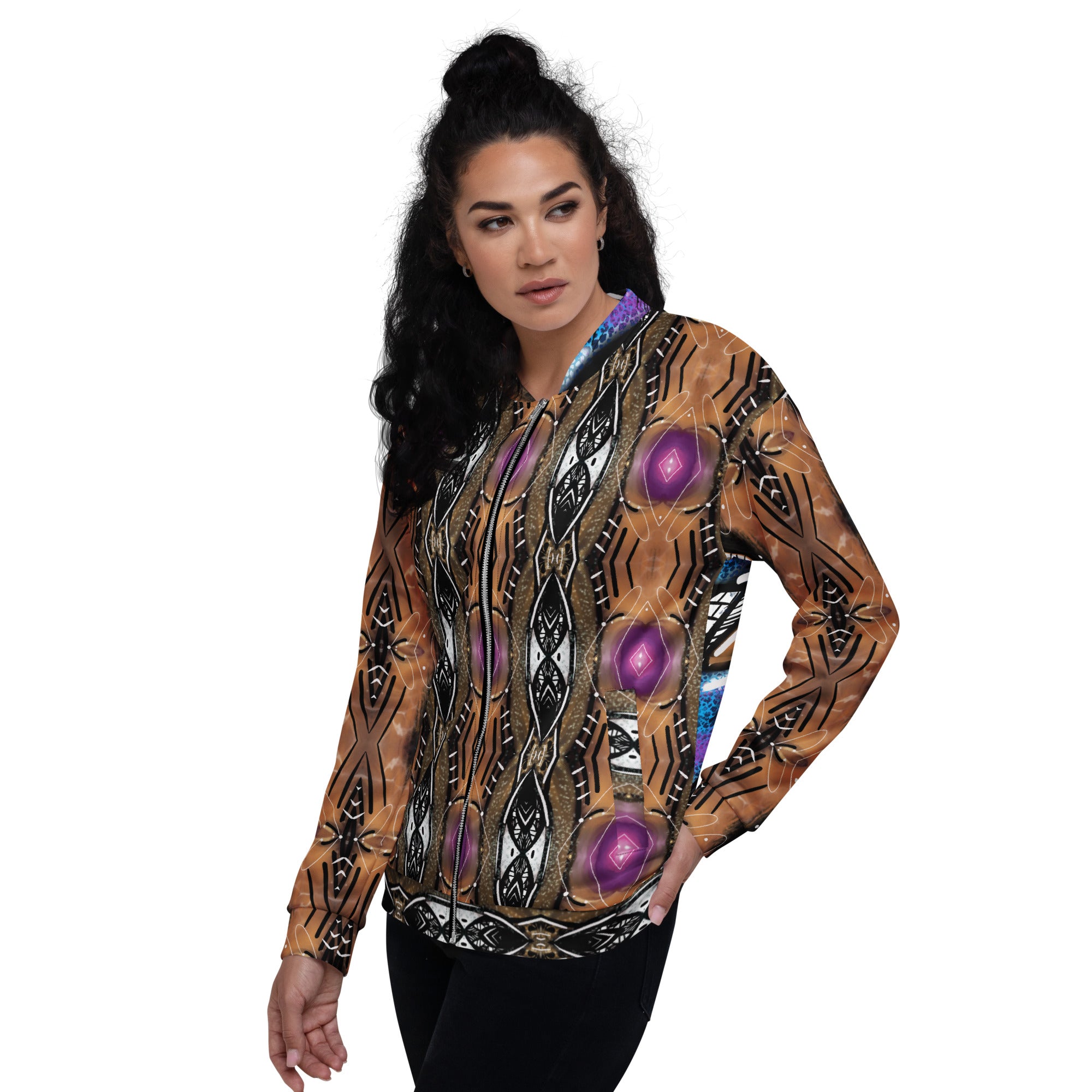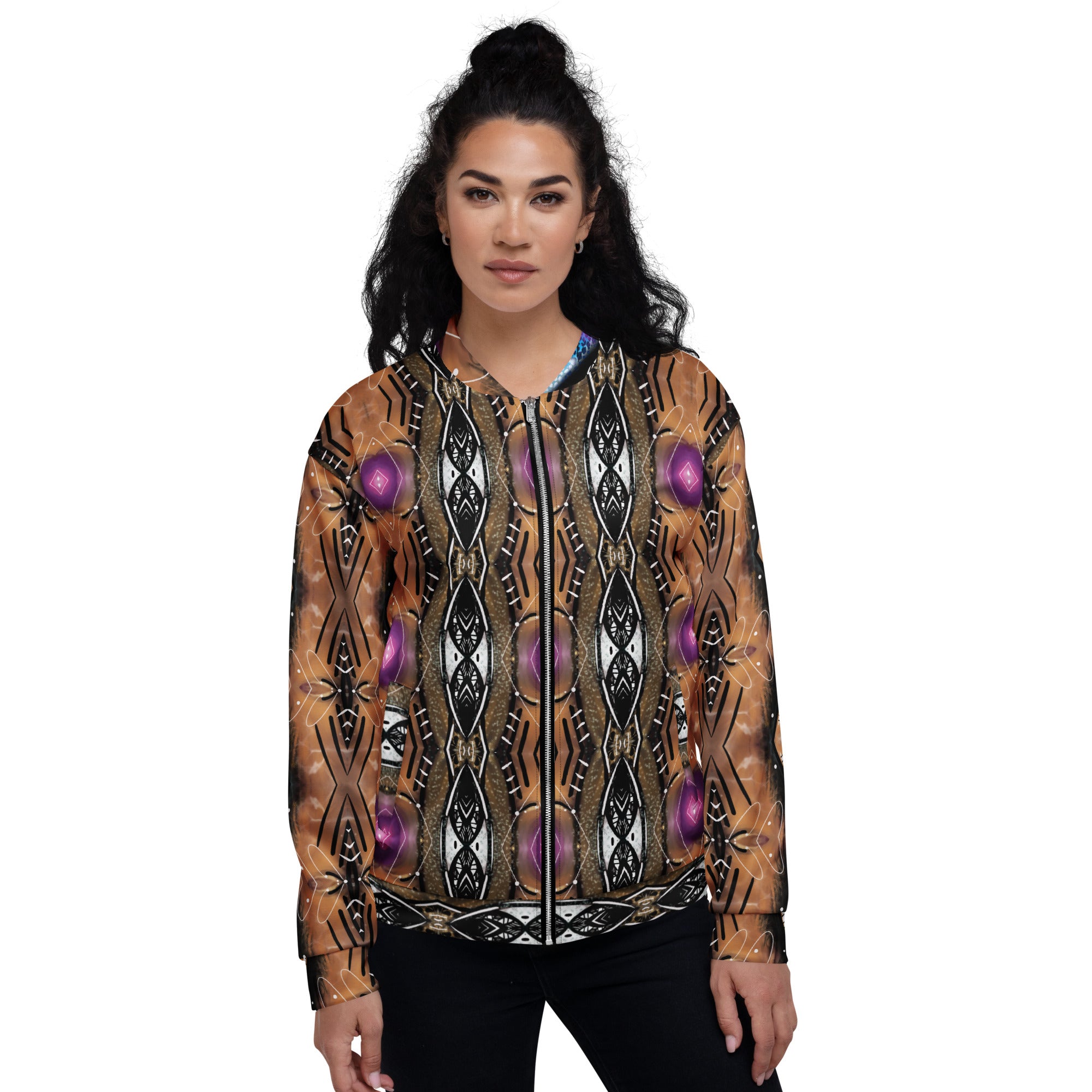 Add a little zing to your wardrobe with this vibrant All-Over Print Bomber Jacket. Wear it on a basic t-shirt, or layer it on top of a warm hoodie—it’ll look great either way. With a brushed fleece inside, and a relaxed unisex fit, this Bomber Jacket is just the stuff of the dreams, so be quick to grab yourself one!