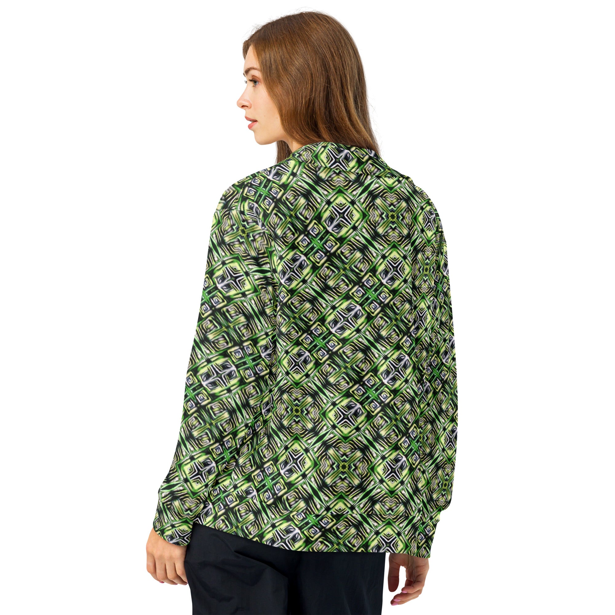 Stay warm and trendy with this zip-up track jacket—perfect for workouts, outdoor activities, and everyday wear. It’s made from recycled materials, has brushed fleece inside for warmth, and zippered pockets.