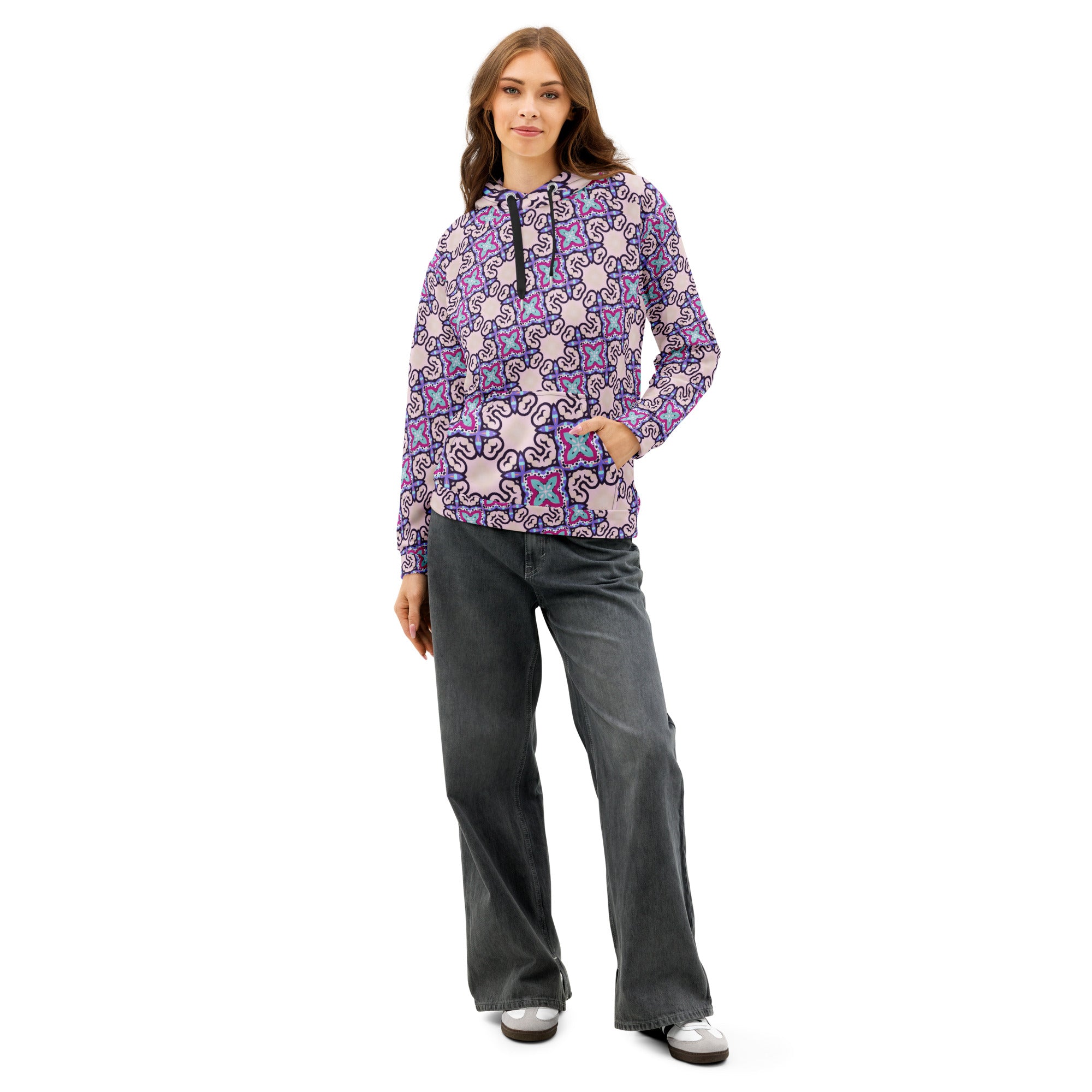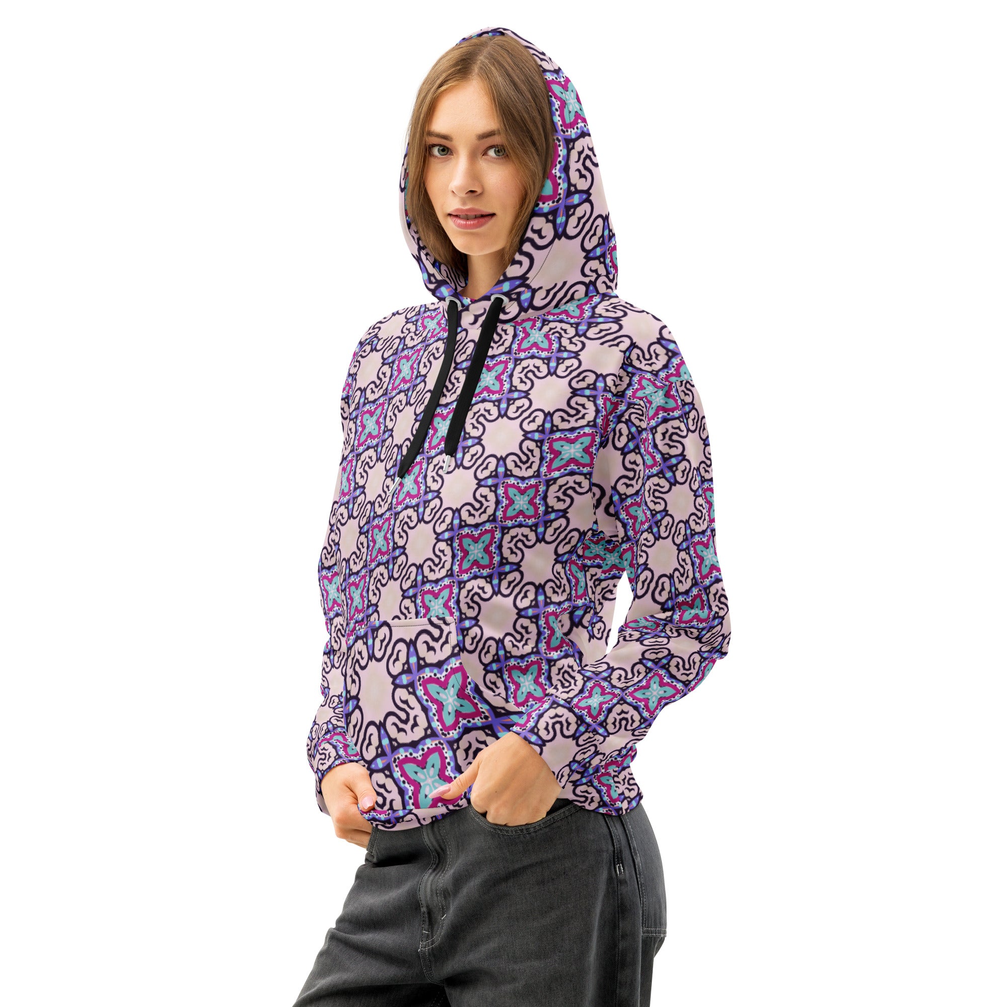 This premium hoodie blends comfort with style. Its relaxed fit and soft cotton fabric make it perfect for casual looks, while the all-over print design lets you create unique and eye-catching styles.